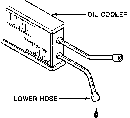 1. Once the oil has been drained from the oil pan, remove the lower hose from the oil cooler and allow any oil in the cooler to drain out. (fig. 6)