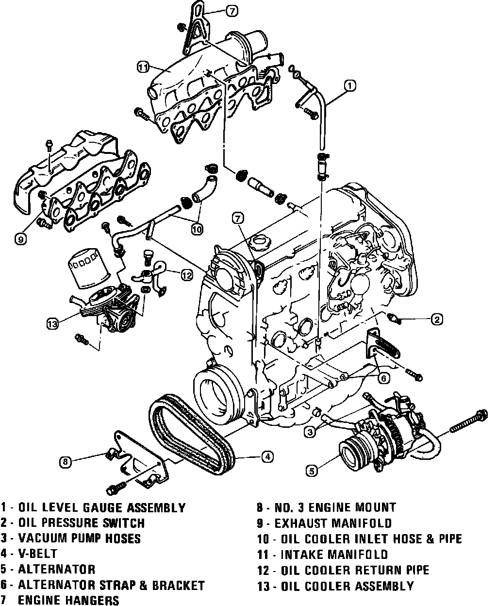 12. Remove oil filter, oil return pipe, and oil cooler assembly.