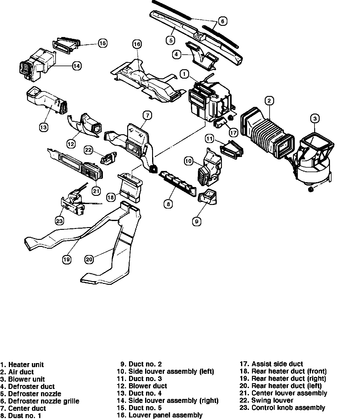 Fig. 16 Heater core & related components. 626 & MX-6: