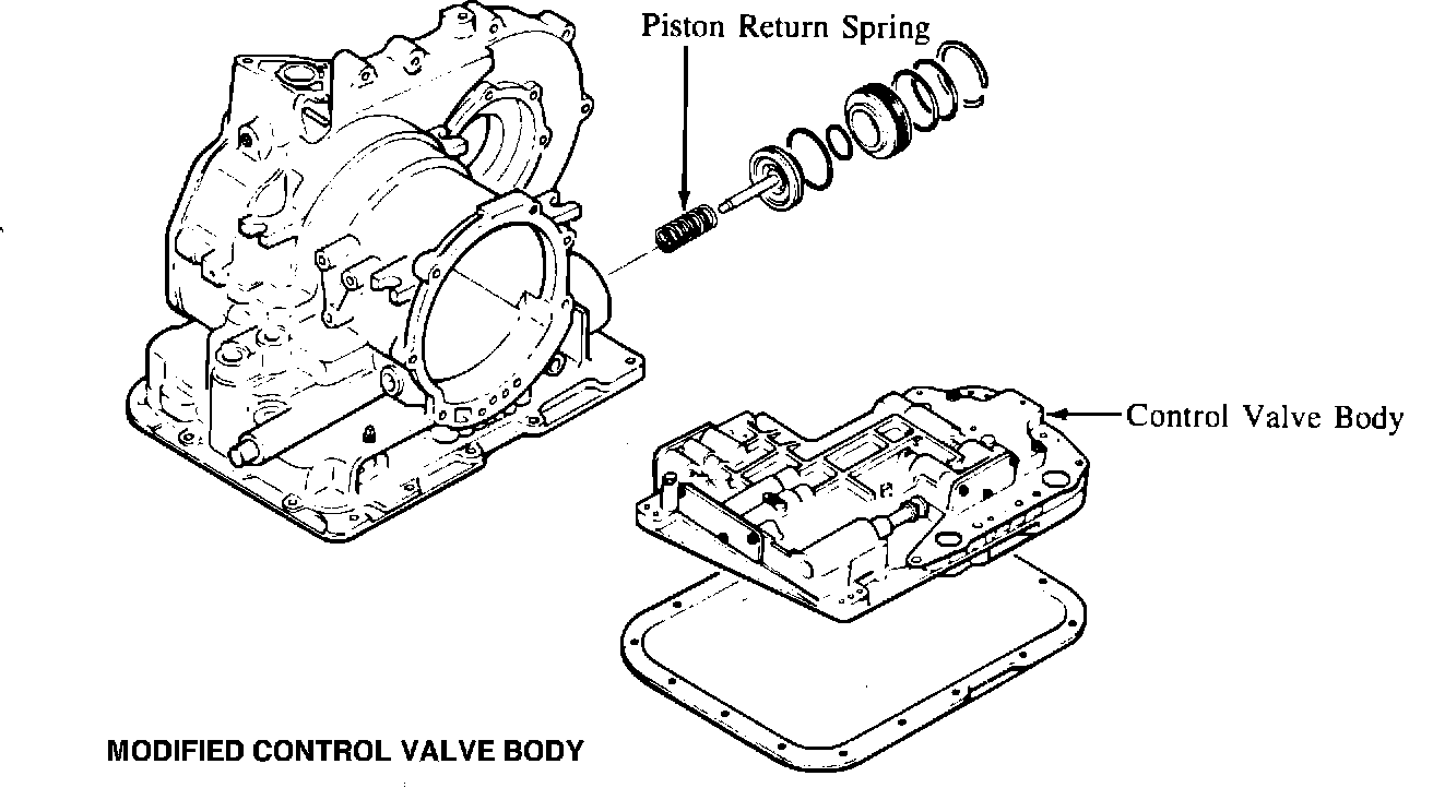 The oil passage of the control valve body for the 1983-85 626 and 1983-85 GLC has been modified in order to make the shift from 1-2 smoother. The modified control valve body is available as a service part for these vehicles.