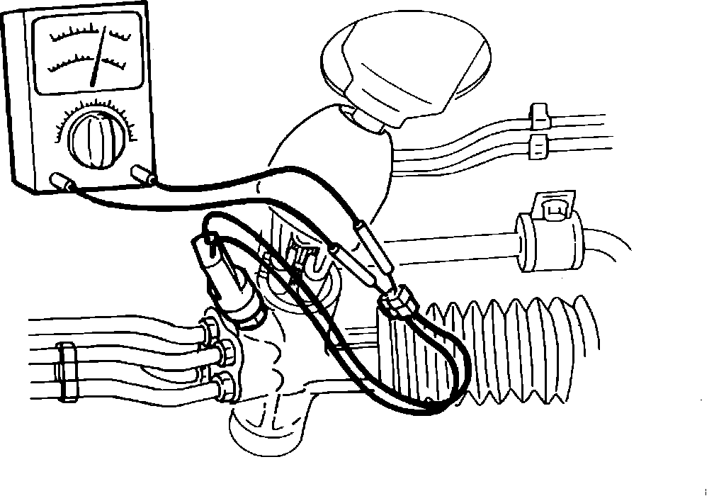 3. Start engine and check continuity of switch while turning steering wheel at idle. There should be continuity while turning and there should be no continuity when not turning.