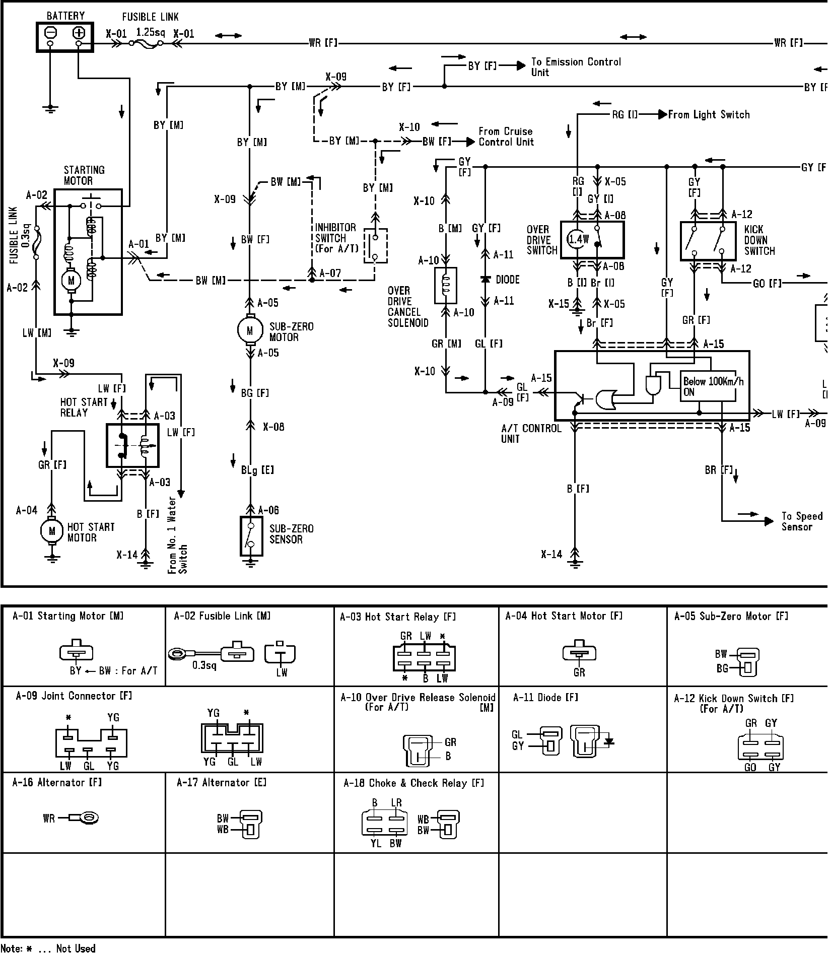 0&\QFig. 31b A/T Control, Charging and Starting System; Hot Start & Sub-Zero Motor & Kickdown Solenoid Wiring Circuit: