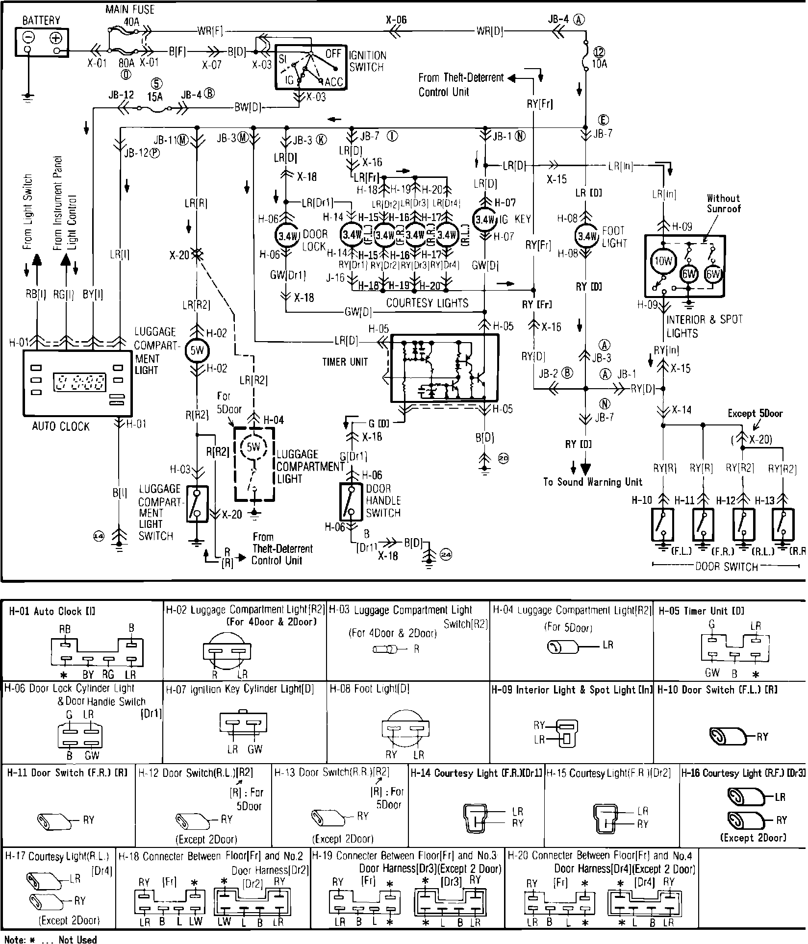 d��Fig. 78b Clock & Courtesy, Door Lock Cylinder, Foot, Ignition Key Cylinder, Interior, Luggage Compartment & Spot Lights Wiring Circuit: