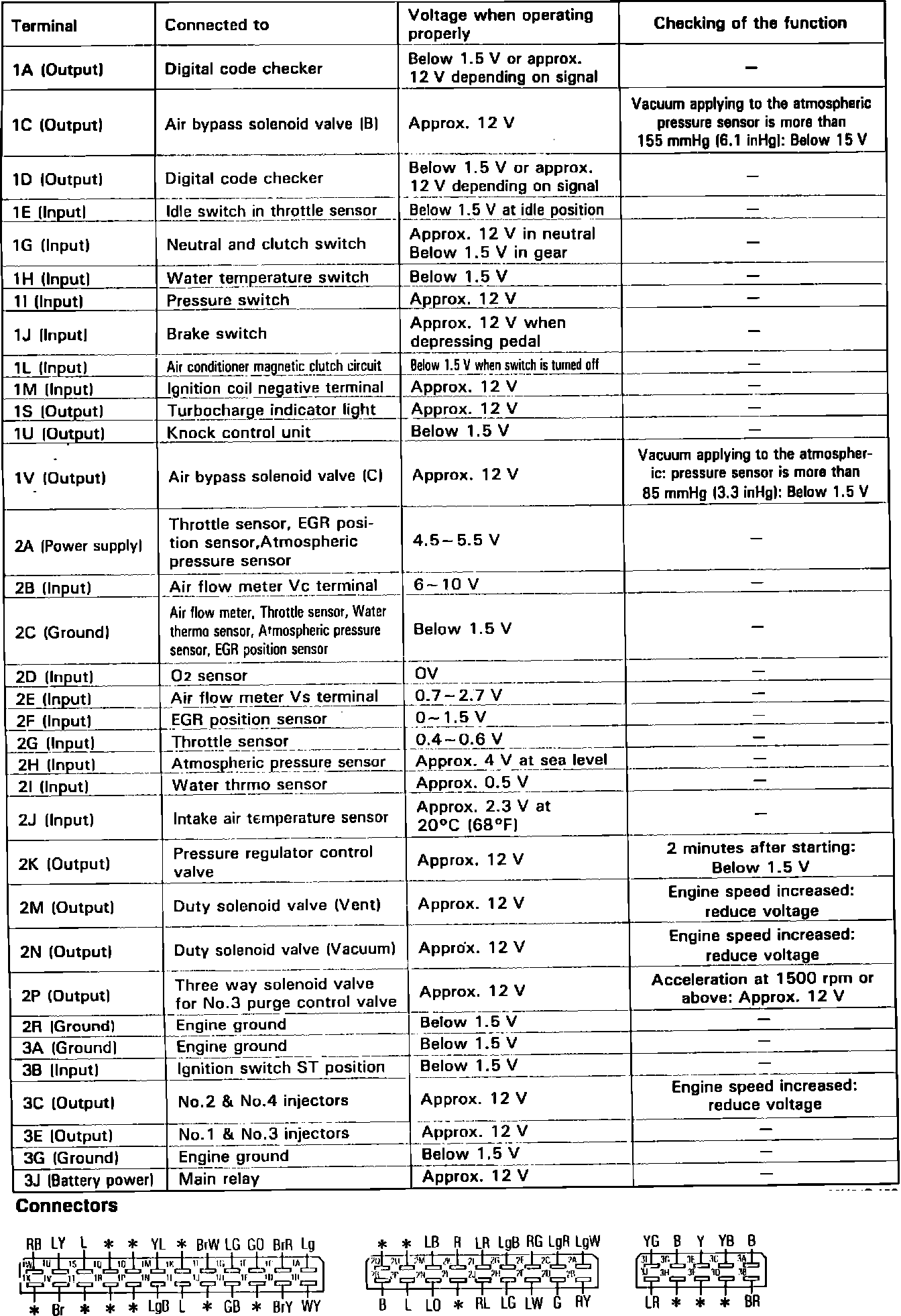 Fig. 58 Control unit voltage specifications chart. Turbocharged models: