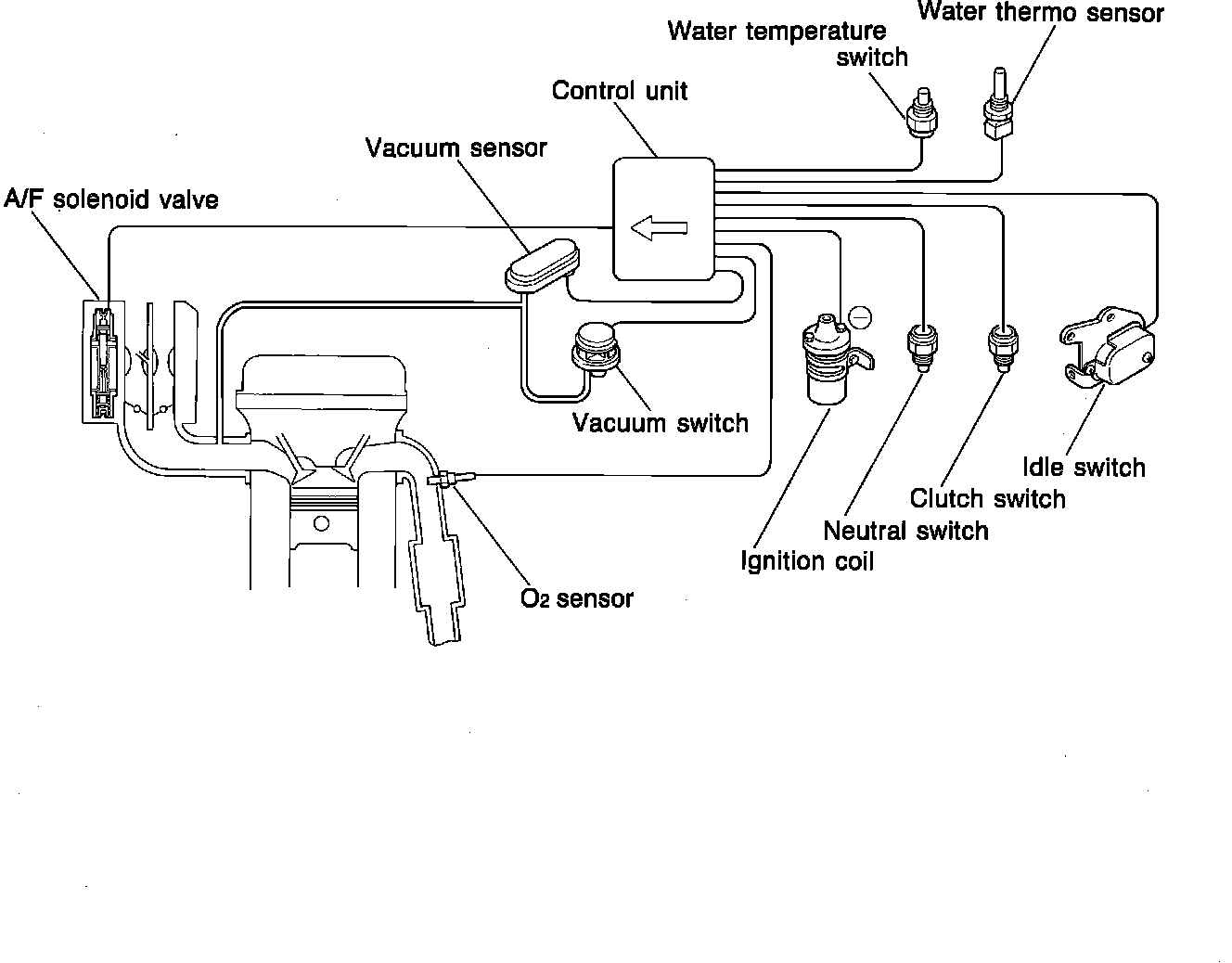 Various sensors transmit signals to the Electronic Control Unit (ECU). The ECU then adjusts injector opening time according to engine operating conditions.