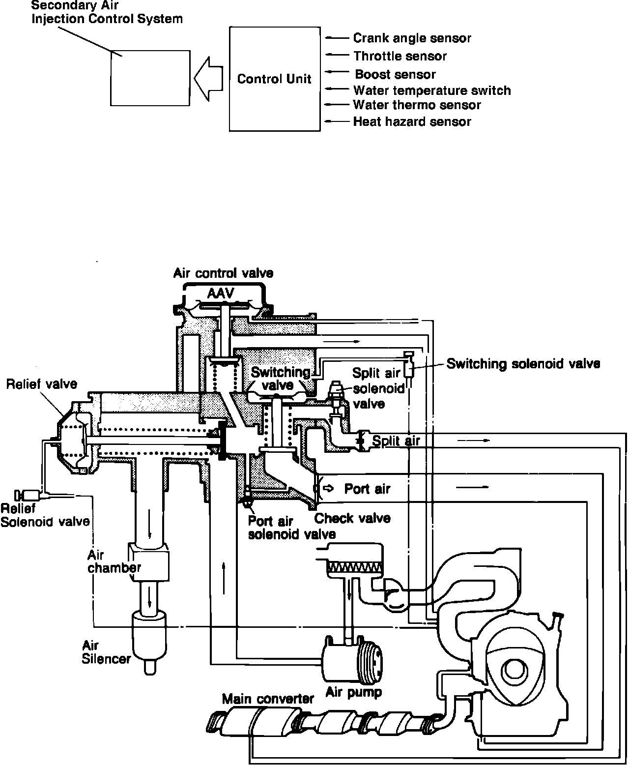 Fig. 65 Secondary air injection control system. Exc. Turbo:
