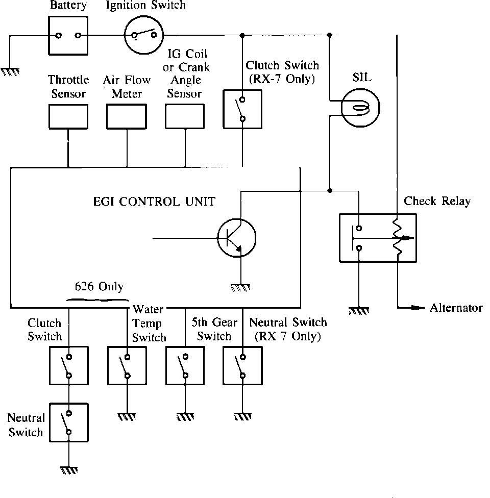 II. TROUBLESHOOTING FOR 1986-87 RX-7 (SIL does not illuminate)