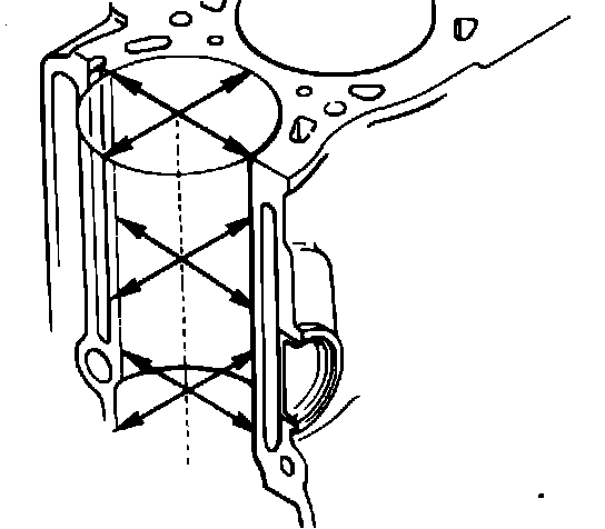 Fig. 23 Measuring cylinder bore at six locations: