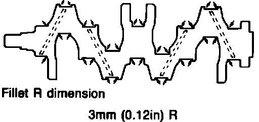 Replace cylinder head assembly if there is any evidence of wear or damage. Measure cylinder head for distortion on the lower mating surfaces along the areas indicated in Fig. 14. Cylinder head distortion should not exceed .006 inch. If cylinder head distortion exceeds .006 inch, grind cylinder head or replace as necessary. Do not grind more than .008 inch from cylinder head.