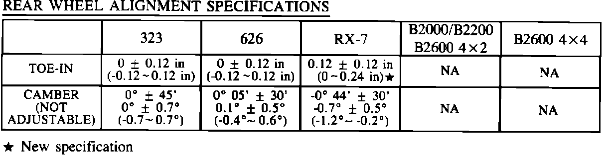 Many of the new computerized four-wheel alignment systems use decimal degrees instead of degrees and minutes as shown in the workshop manuals. For your convenience, front and rear wheel alignment specifications for 1987 vehicles are shown in both units.. Minimum and maximum limits are shown in parenthesis.