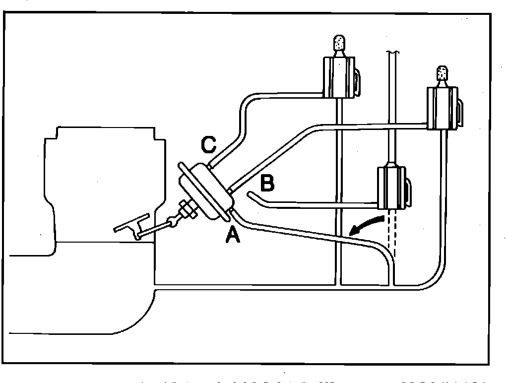 16. Attach the intake manifold vacuum directly to port C of the servo diaphragm. Increase the engine speed to 2,000 rpm, using the throttle lever, then release it.