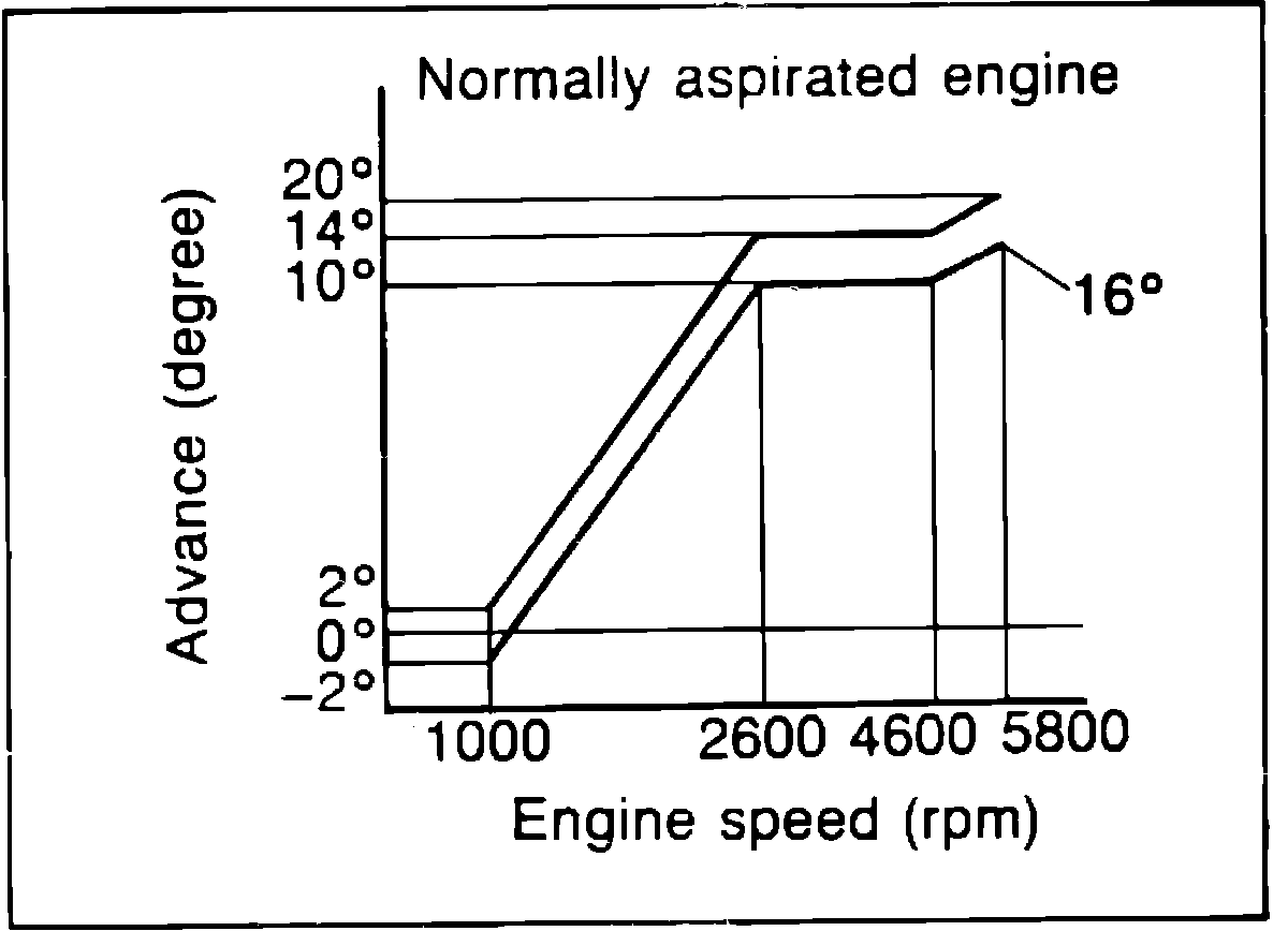 Fig. 14 Centrifugal spark advance chart. Non-turbocharged: