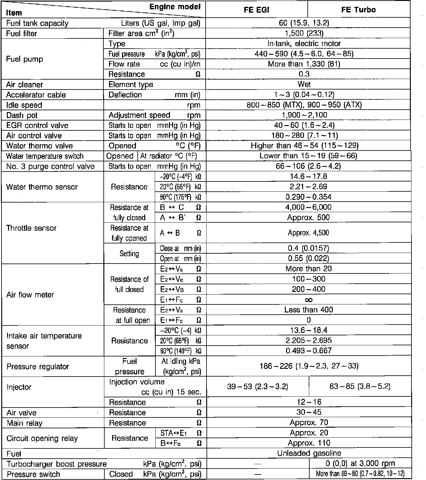Fig. 8 Fuel System Specifications (FE, EGI & Turbo):