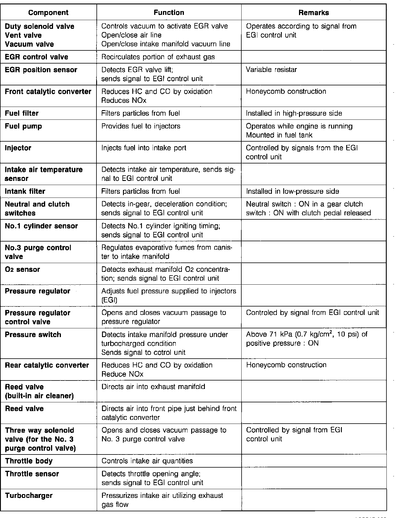 This system, Electronic Gas Injection (EGI) system consists of the fuel pump, pressure regulator, injectors and, a pulsation damper.