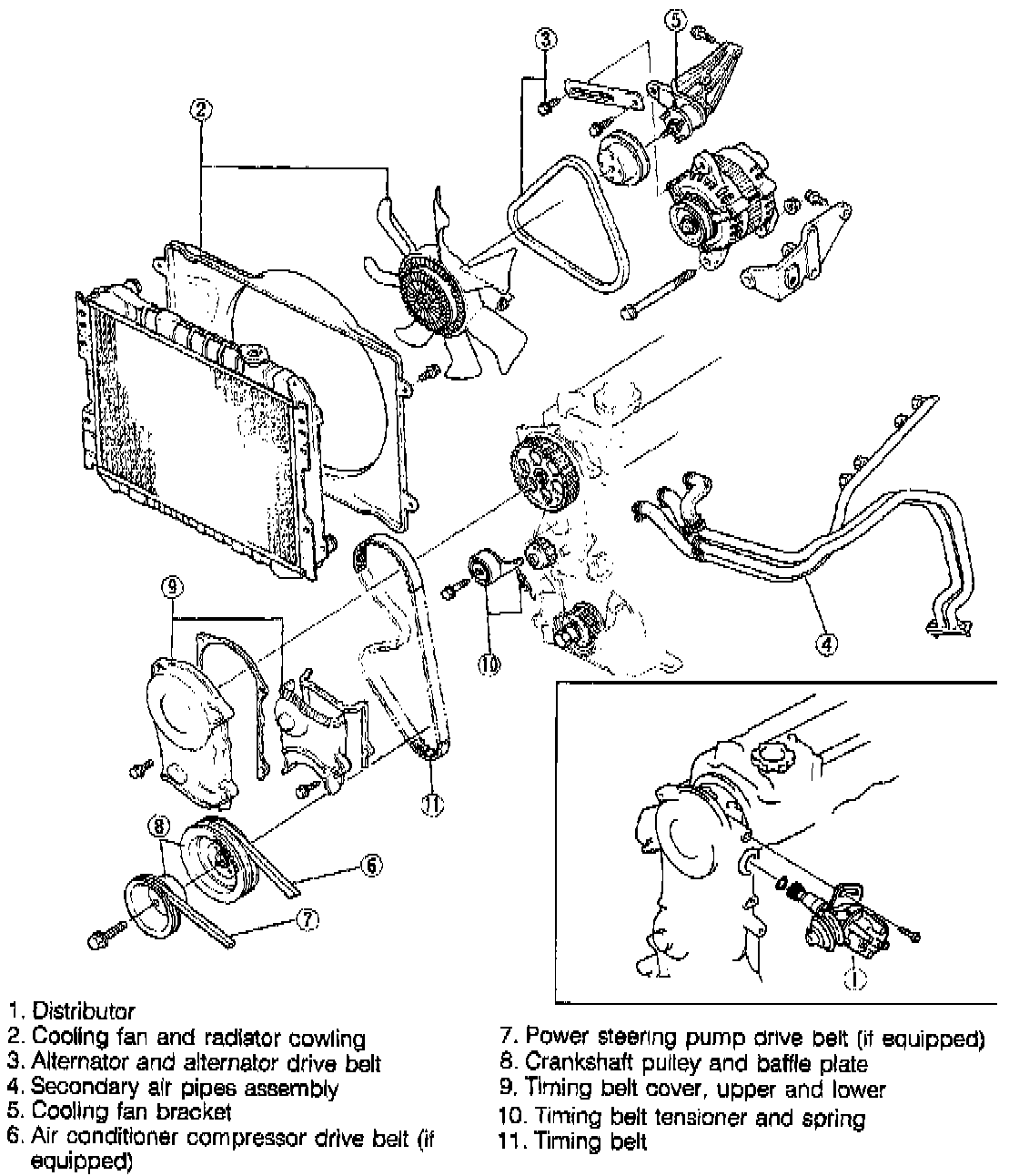 7. Remove upper and lower timing belt cover.