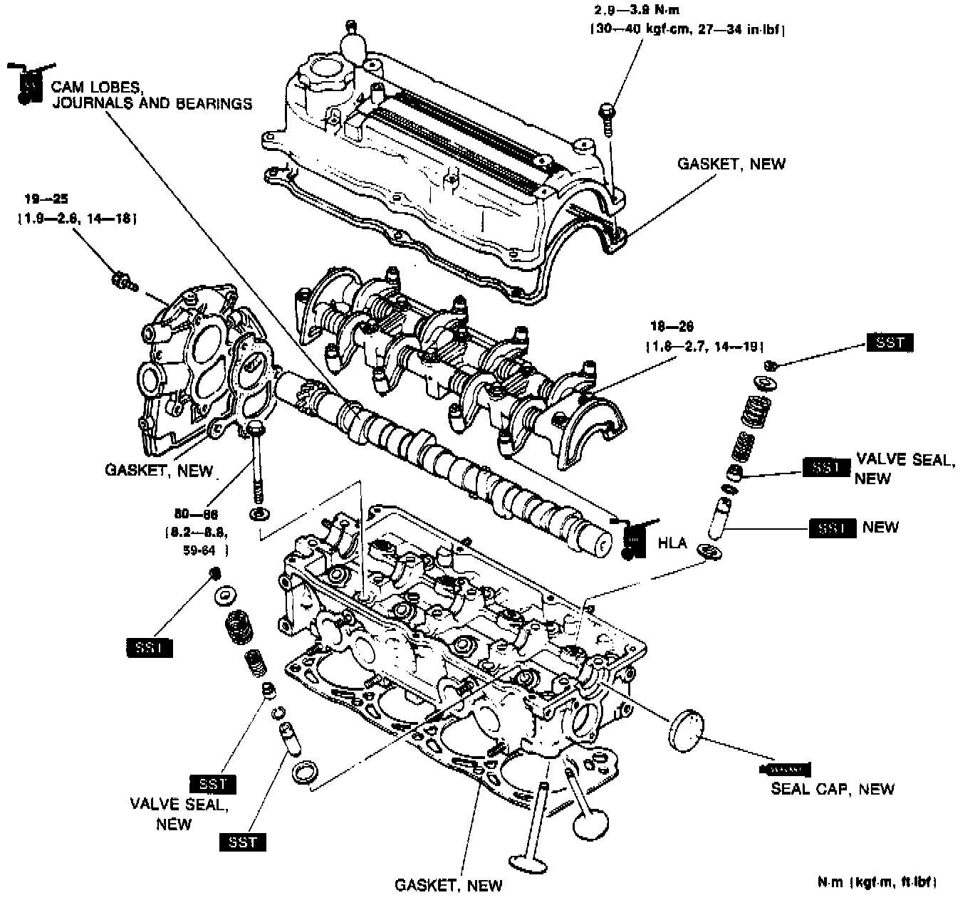 Tighten the cylinder head bolts in two or three steps in the order shown in the figure.