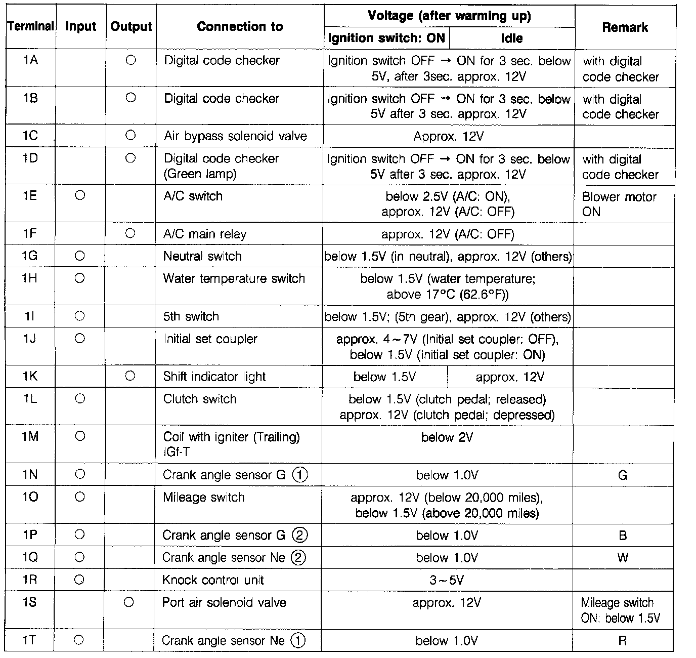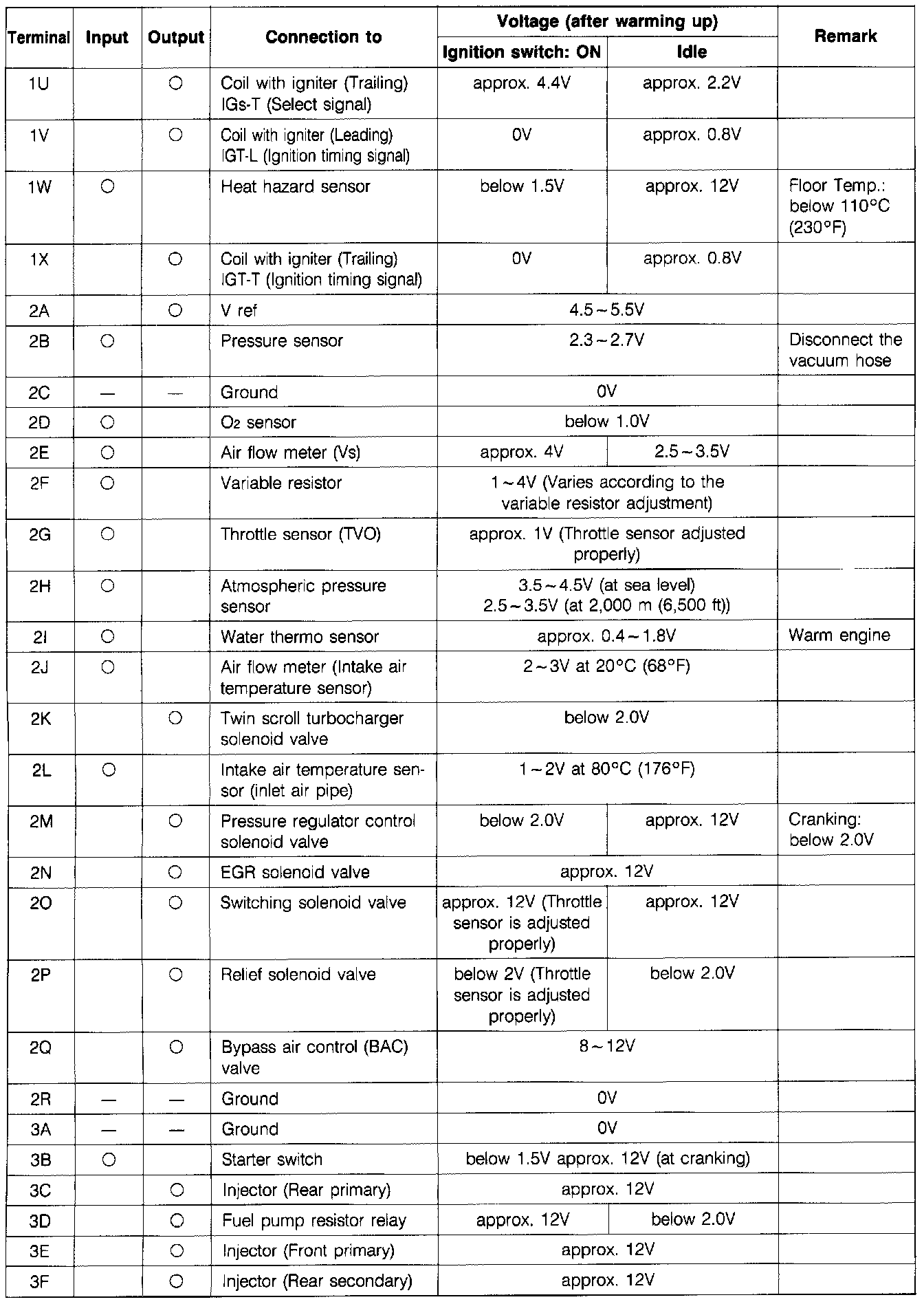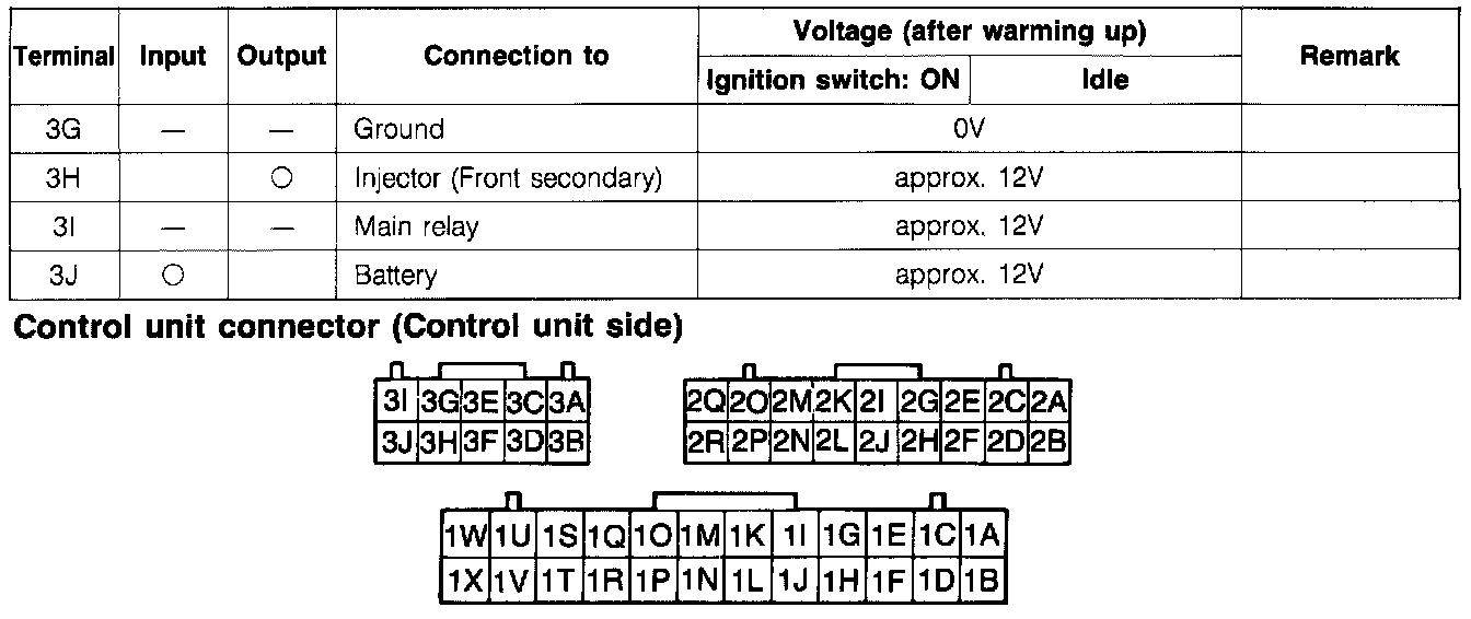 Control Unit Voltage Specification Chart: