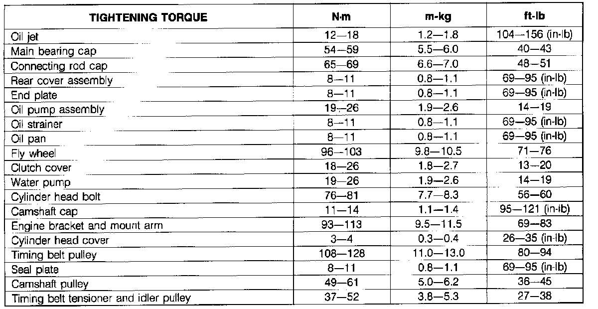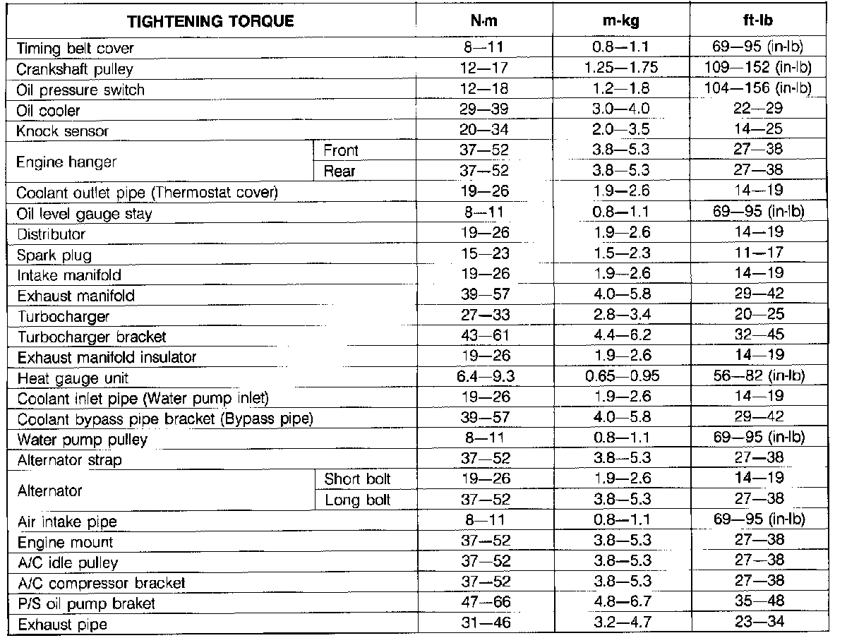 Torque Chart: