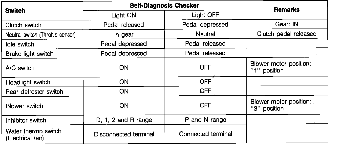 4. Turn ignition switch to On position, then check that monitor lamp illuminates when each switch is made to function according to ``Testing Procedures.'' If even one of the switches is activated, the monitor lamp will stay on. Do not start engine.
