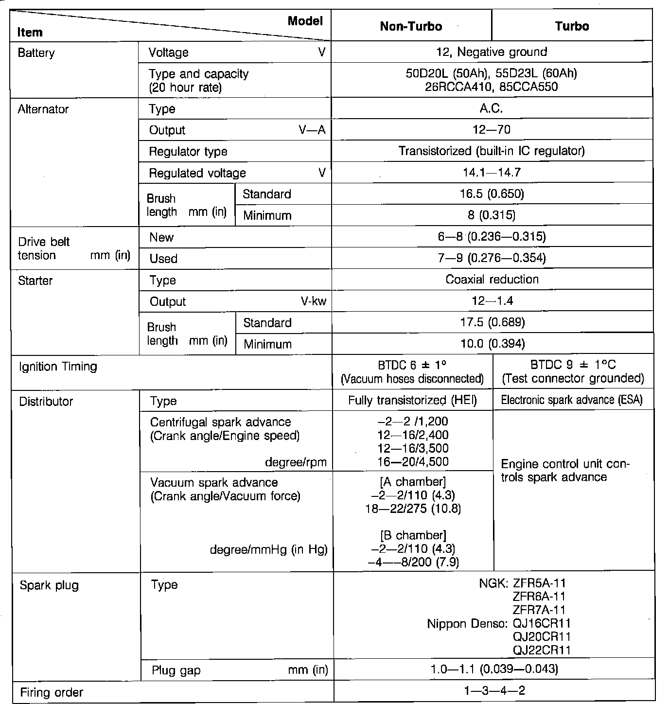 Fig. 3 Ignition system specifications: