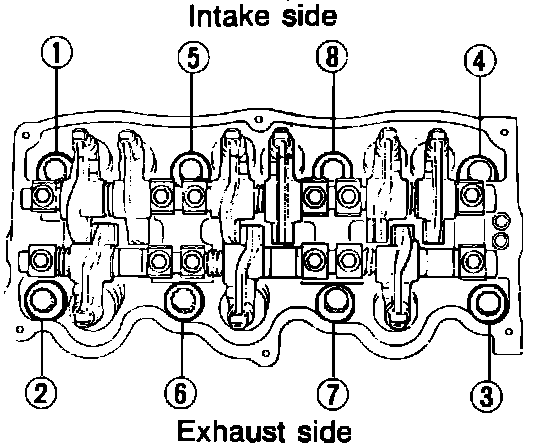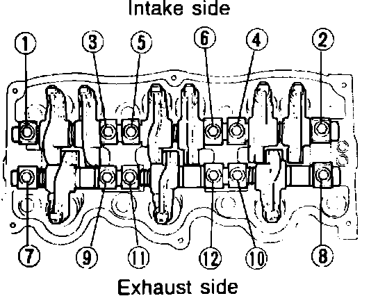 Fig. 1 Rocker shaft bolt loosening sequence: