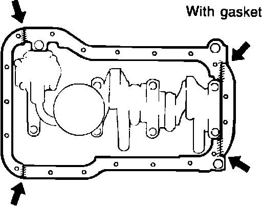 5. If no oil pan gasket is used, apply a continuous bead of suitable sealant to oil pan along the inside of the bolt holes with the ends overlapping.