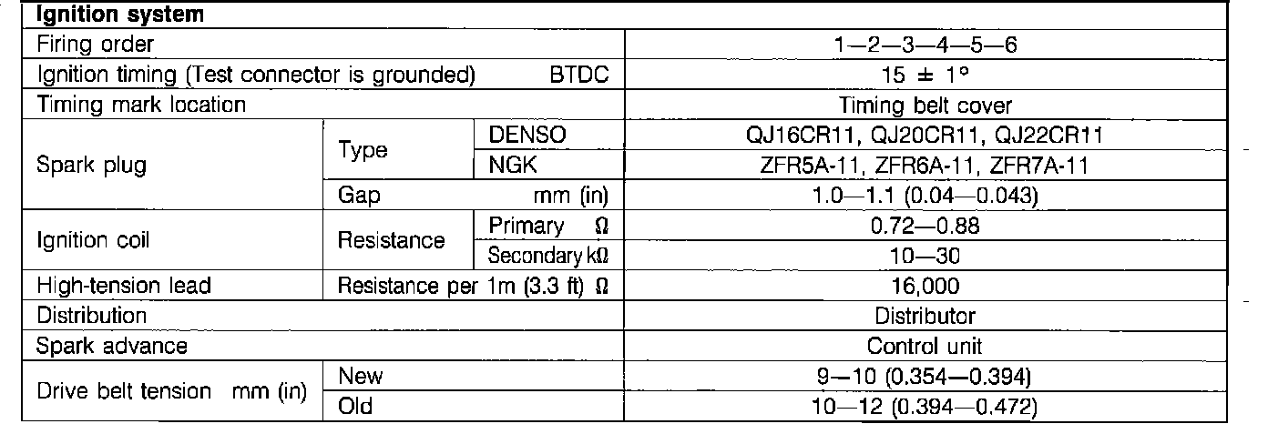 Fig. 13 Ignition system specifications:
