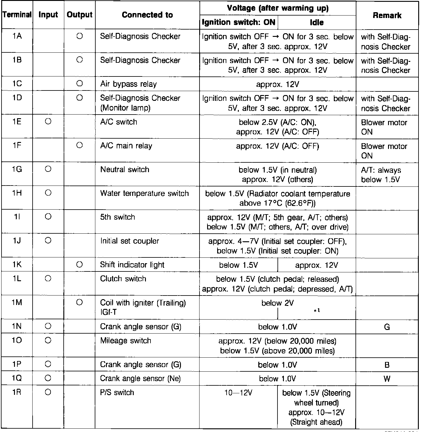 Fig. 70c Control unit voltage specifications chart. Exc. turbo: