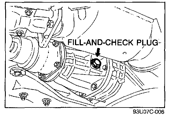 10. Install the drain plug and add the specified oil from the fill- and-check plug port.