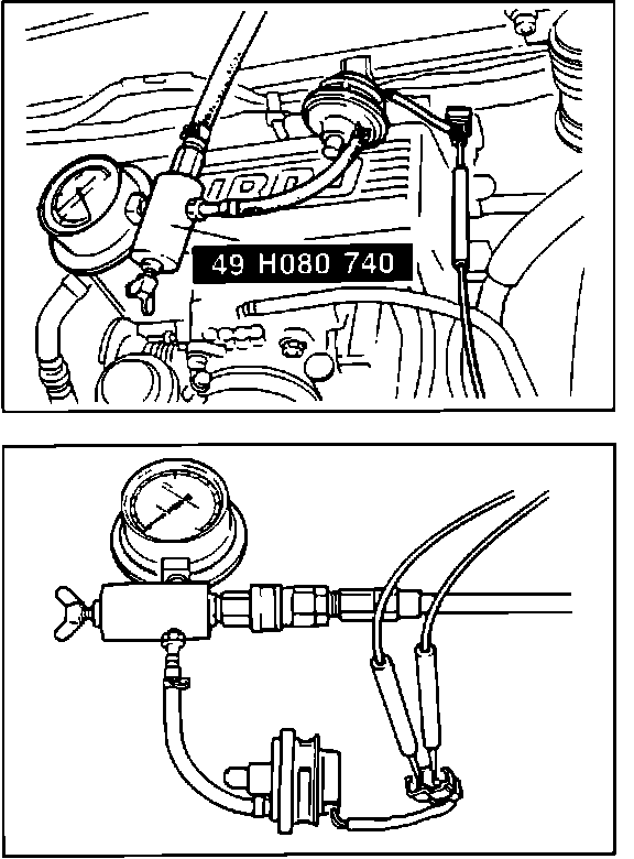 2. Connect Mazda SST #49 H080 740 or equivalent aftermarket tool to pressure switch vacuum hose.