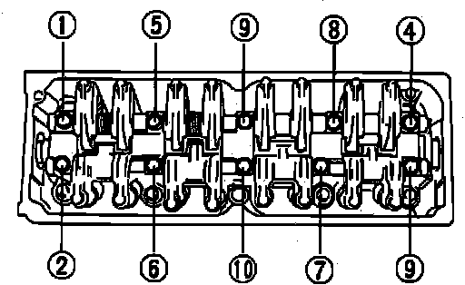 Fig. 59 Rocker Shaft Bolt Loosening Sequence:
