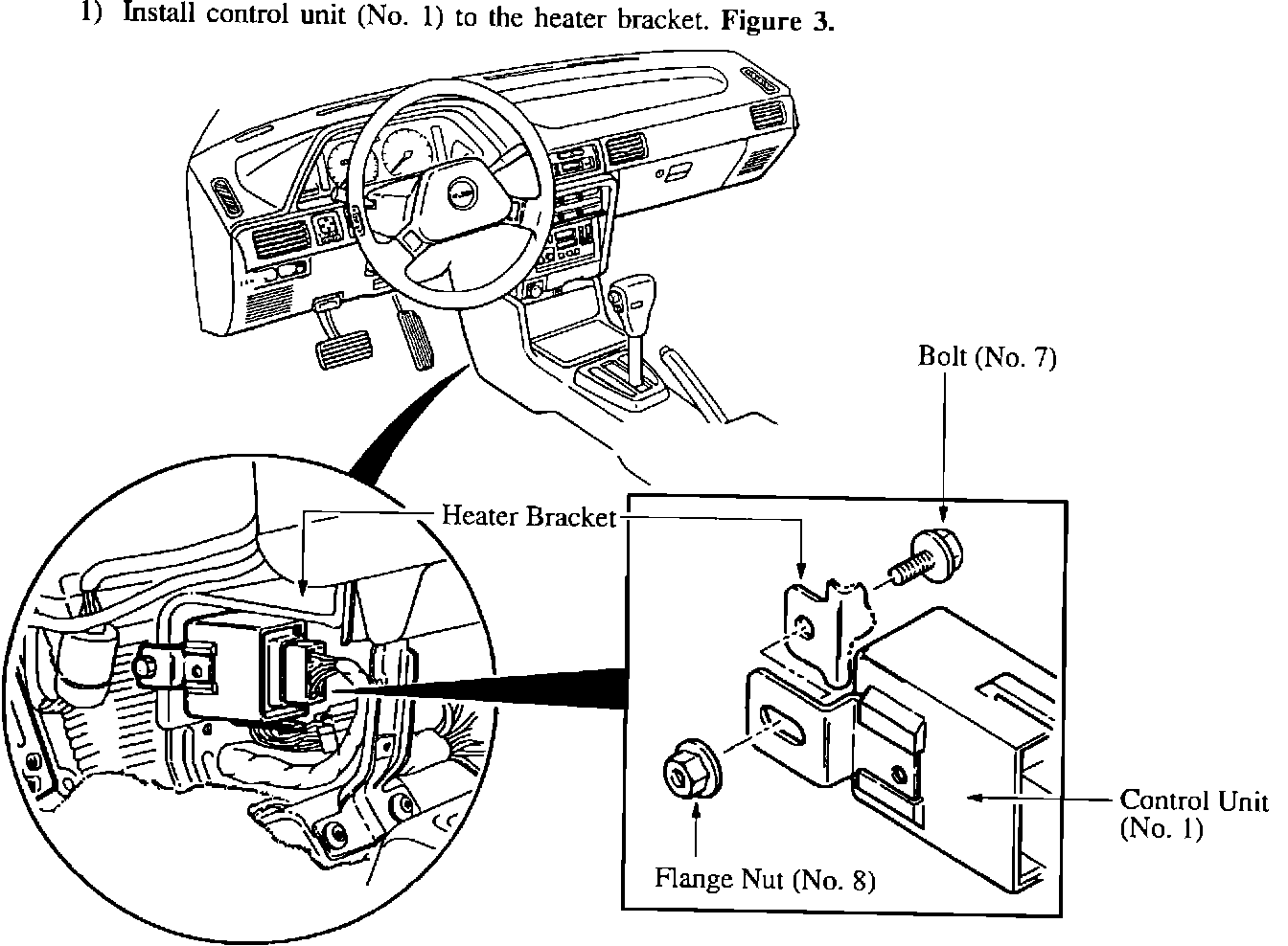 6) Install brown wire from short cord (No. 3), to brown wire from ECU center connector with a butt splice connector. Figure 6.