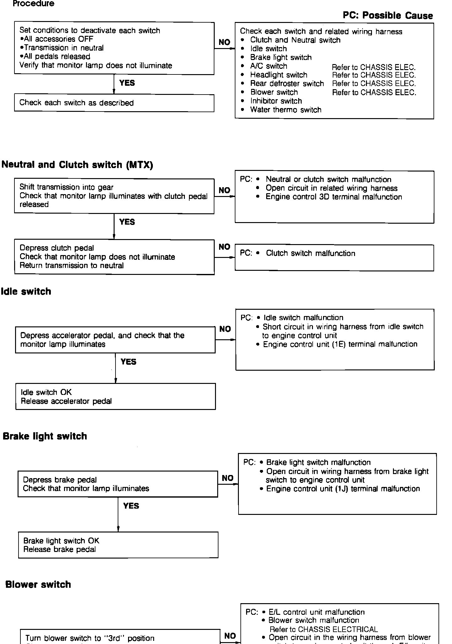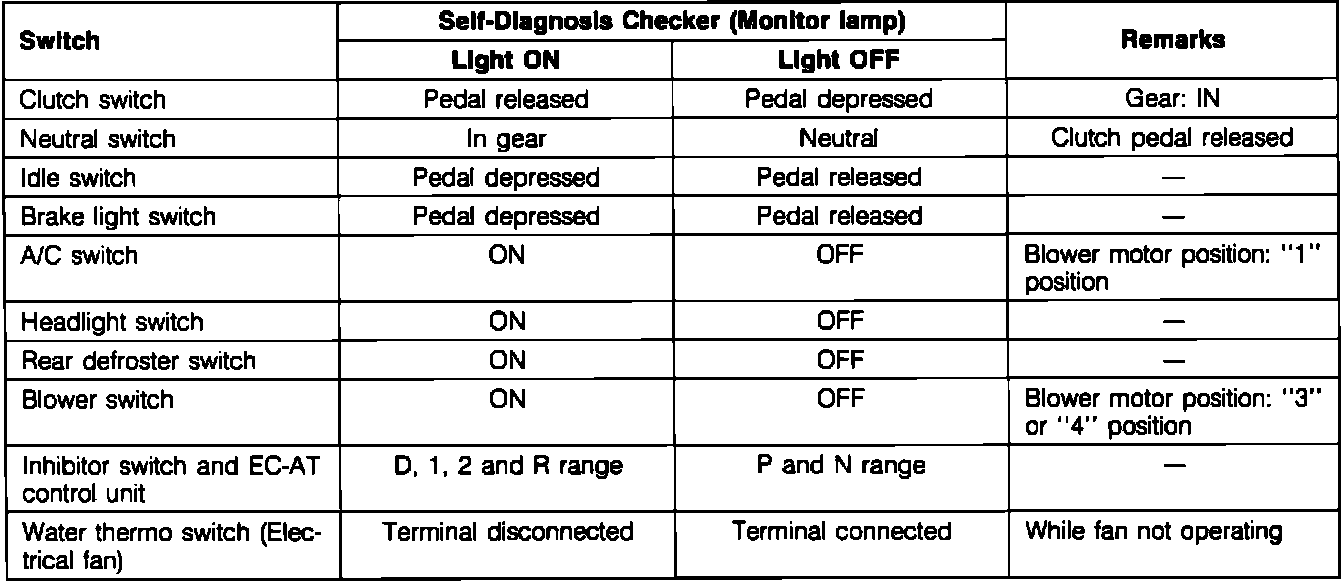 4. Turn the ignition switch on, then check that the monitor lamp illuminates when each switch is made to function according to the procedure below.