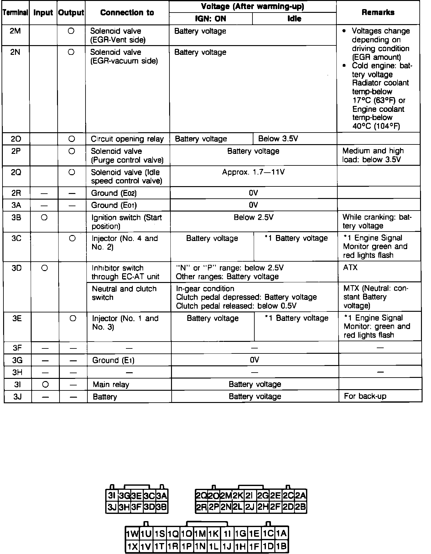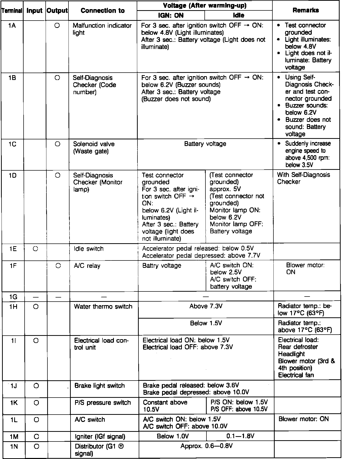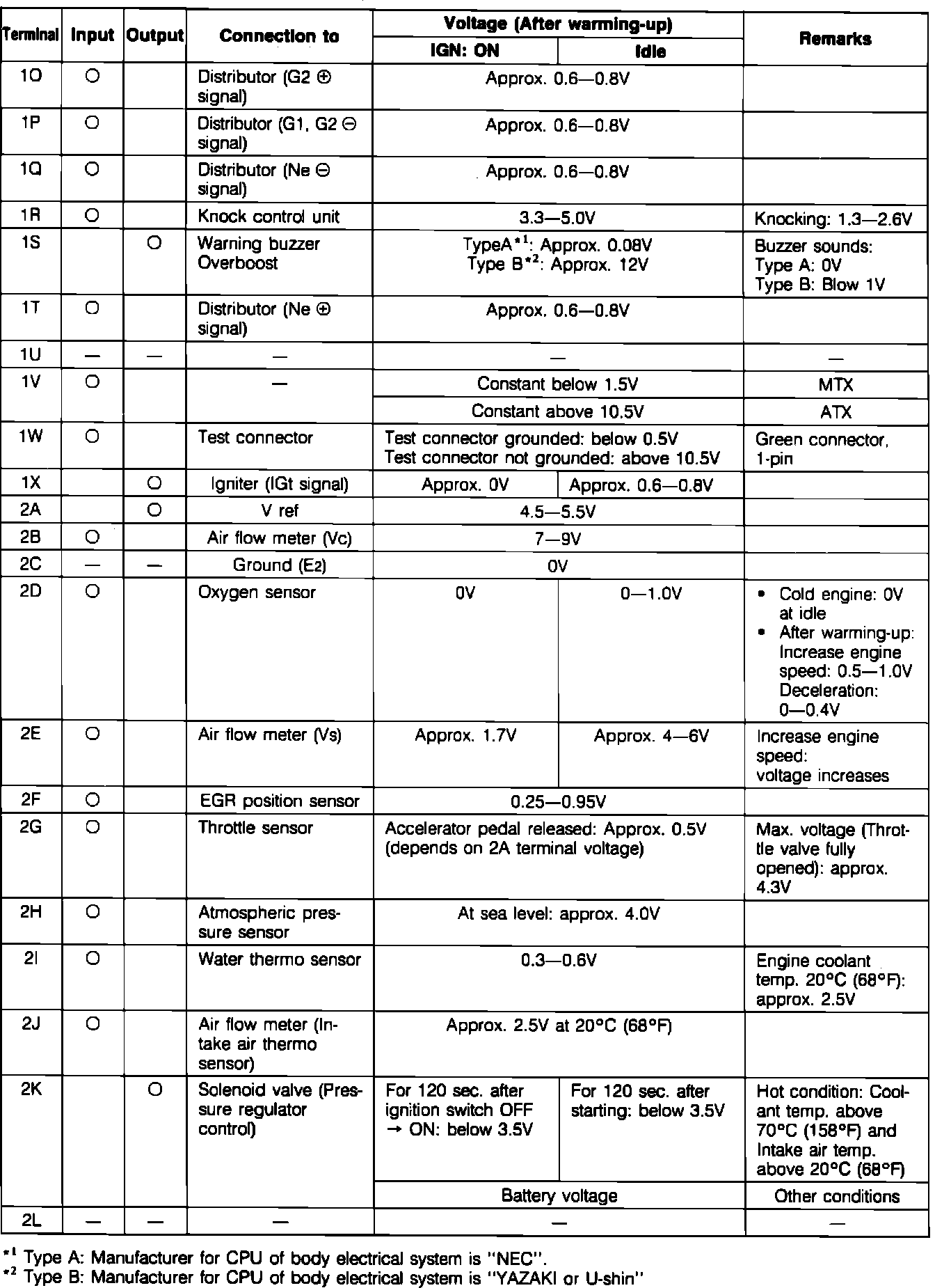 NOTE: If the input and output devices and related wiring are normal, but the engine control unit terminal voltage is incorrect, replace the engine control unit.