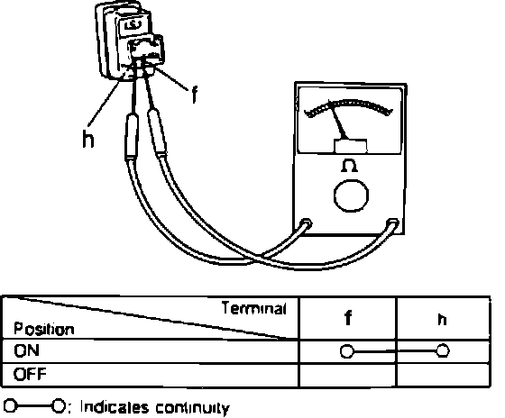 1. Disconnect main switch connector, then using an ohmmeter, check for continuity at main switch terminals as shown in Fig. 19.