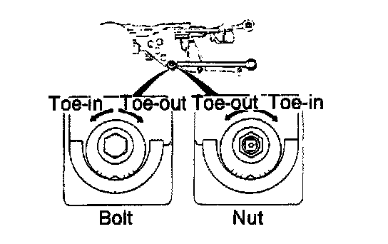 To decrease the toe-in, turn the adjusting bolts as follows: