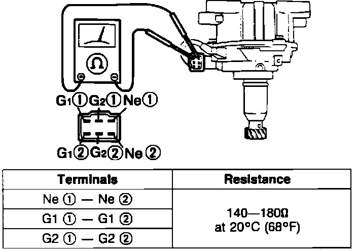 A faulty "Ne" signal will set malfunction code 02. A problem with the "G1" signal will set malfunction code 03. "G2" will set malfunction code 04. Refer to ON-BOARD DIAGNOSTICS under COMPUTERIZED ENGINE CONTROLS.
