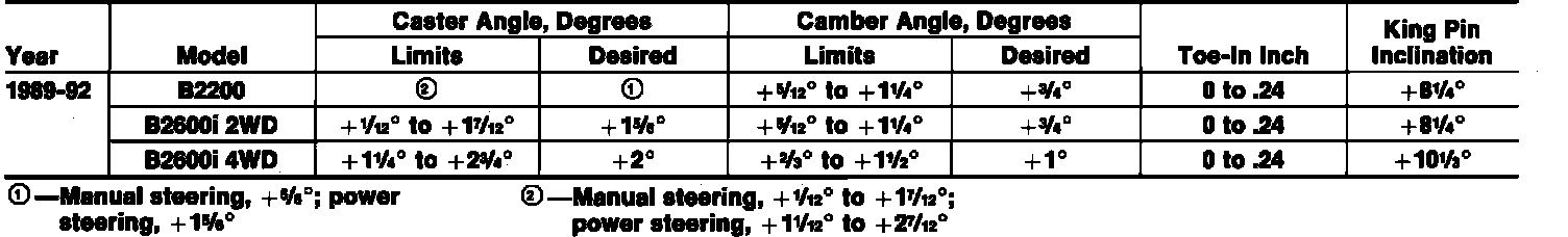 Front Wheel Alignment Specifications: