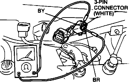 2. Connect an ohmmeter to the switch connector. In Park and Neutral, there should be continuity through the switch. In any other range, there should be no continuity through the switch.