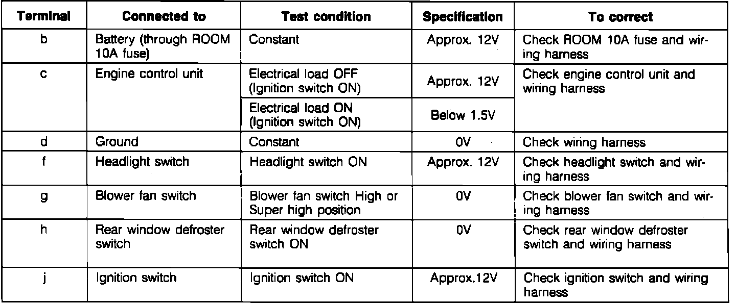 3. If the terminal inspection results are correct but system does not operate, replace the control unit.