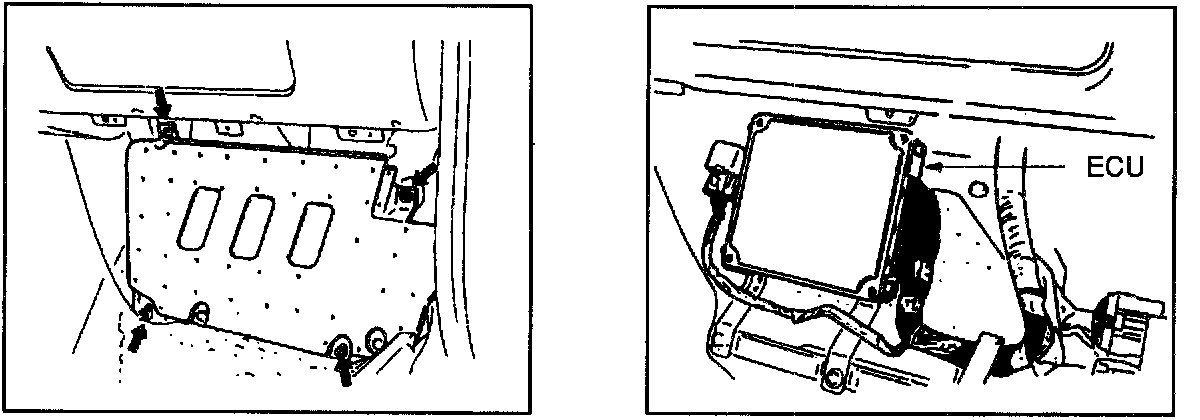 1. Lift up the passenger's seat floor mat and remove the protector cover.
