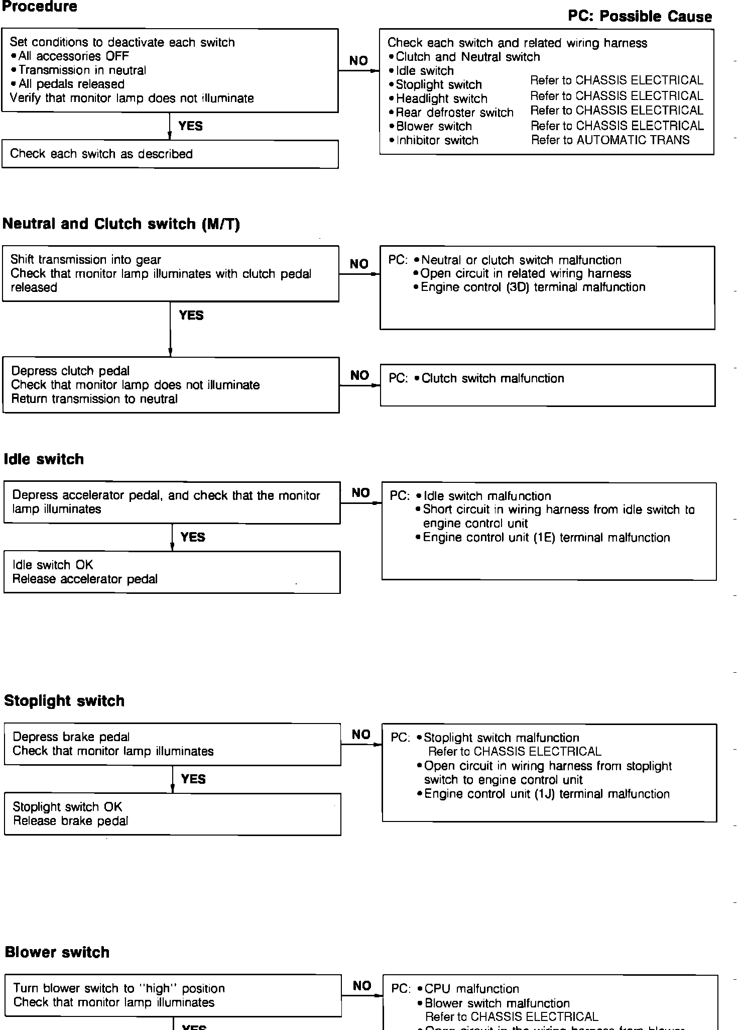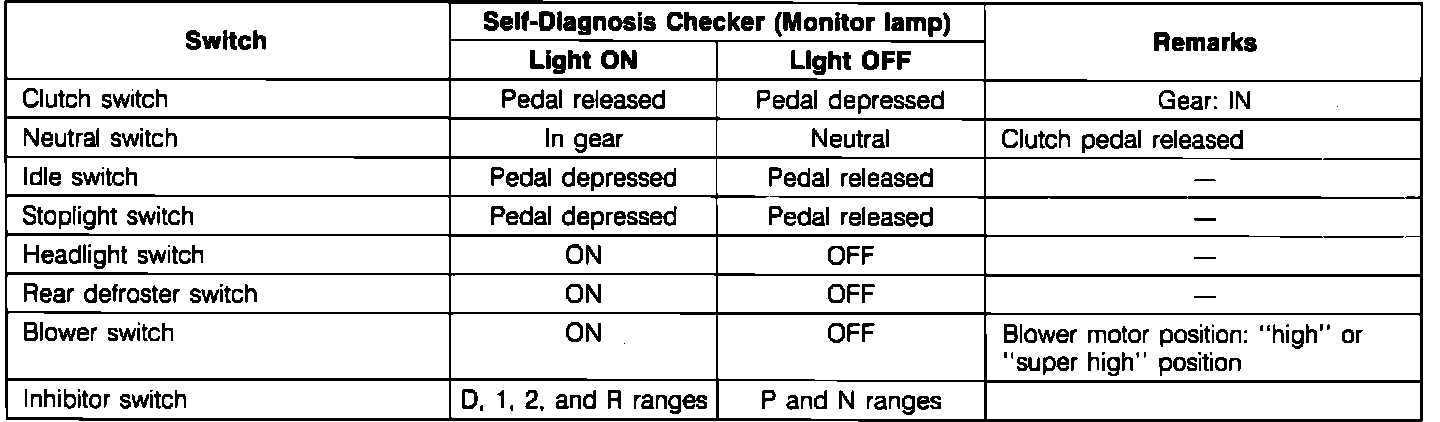 4. Turn the ignition switch on, then check that the monitor lamp illuminates when each switch is made to function according to the procedure below.
