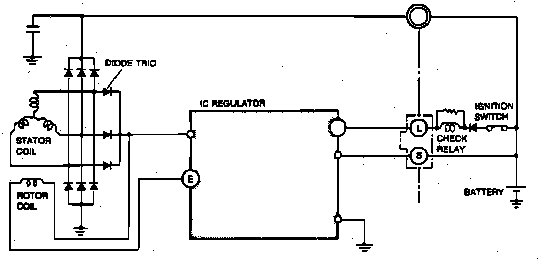 Charging systems in Fig. 1 are equipped with self-diagnostic capabilities which monitor system operation and alert driver to malfunctions. Problems sensed in system operation will be indicated by illumination of the alternator warning lamp.