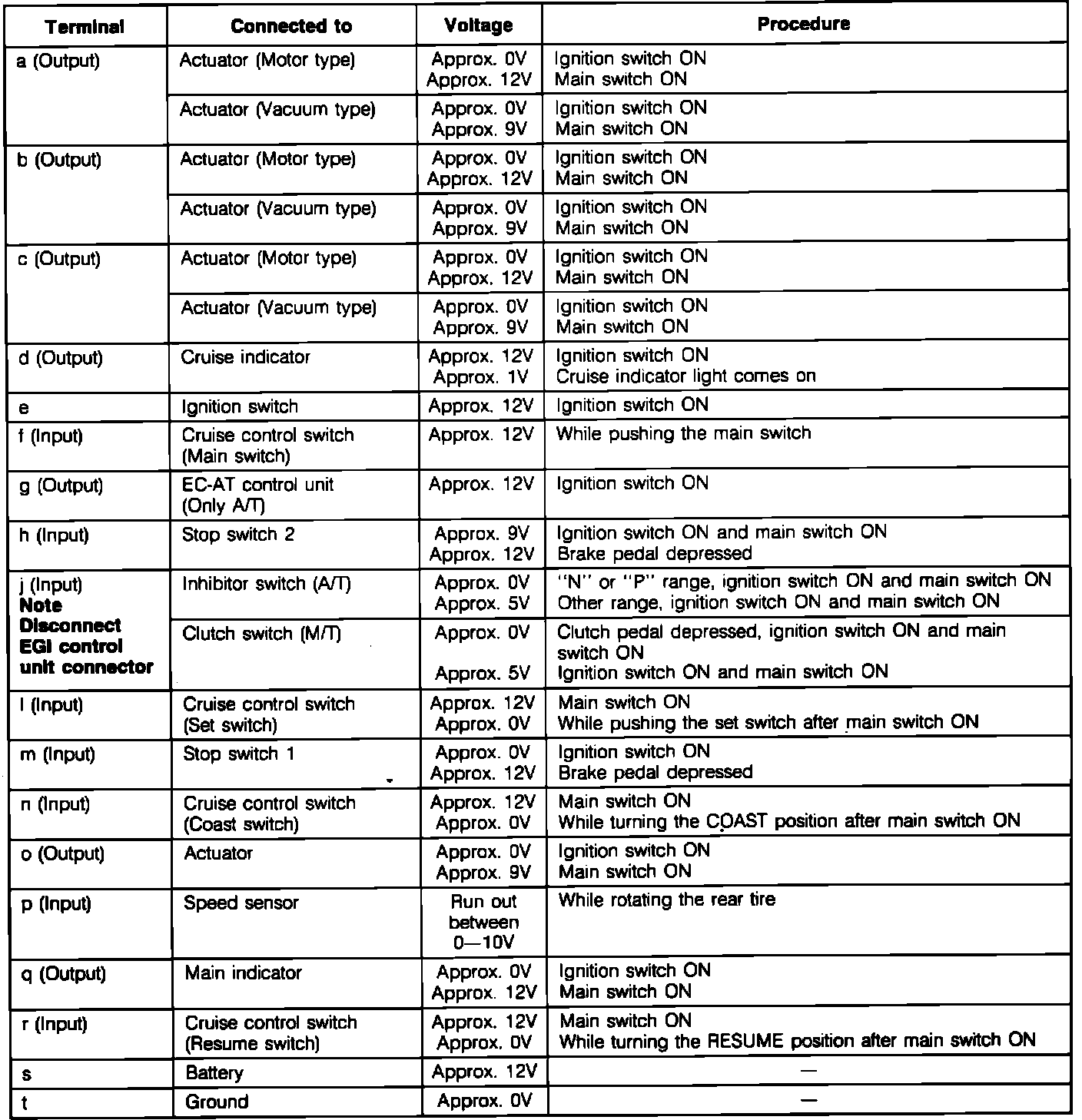 Turn ignition switch on and check the terminal voltage as described in