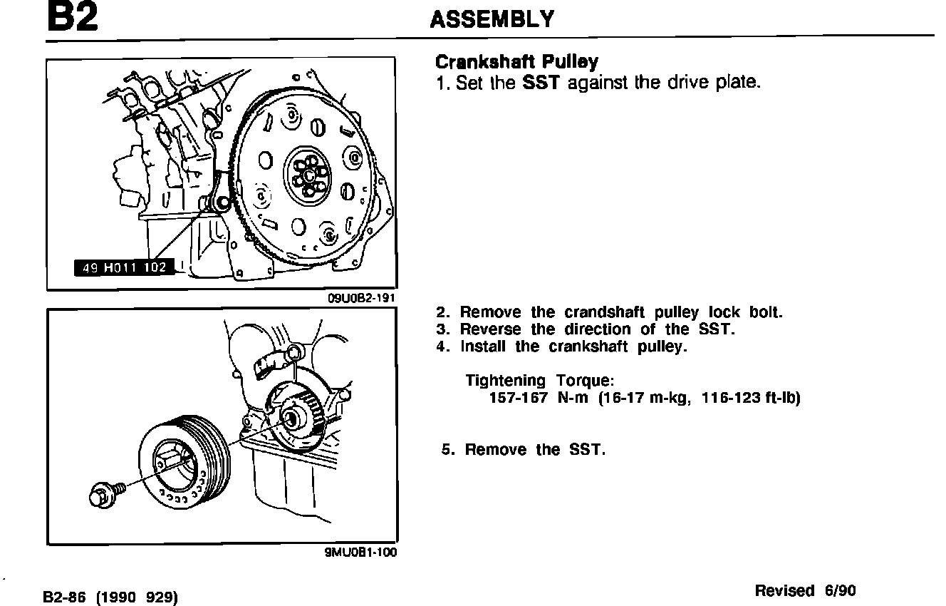 Listed below are pages for the 1990 929 and 323/Protege' Workshop Manuals which required revisions. Please replace the current pages with the replacement pages provided.