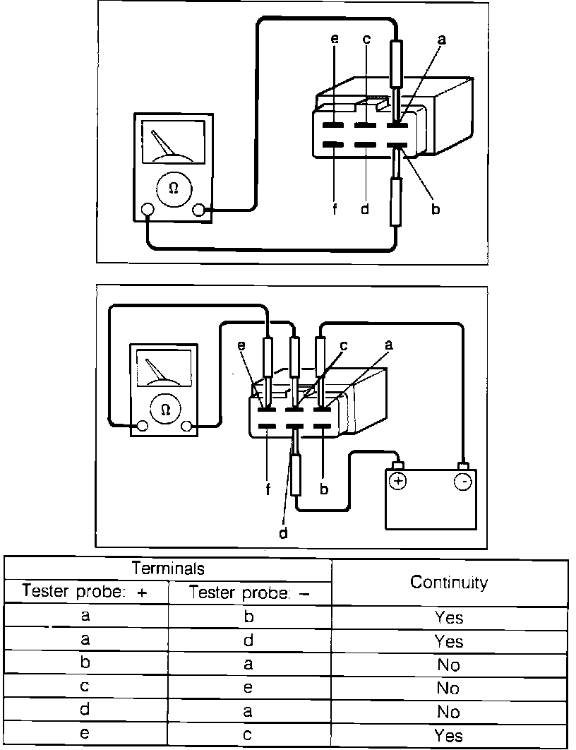 6. Check that continuity exists between terminals "e" and "c."