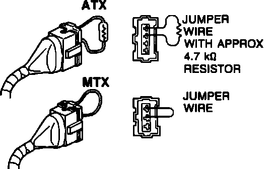 NOTE: Compressor clutch and condenser fan operate in unison. "ATX" connector: automatic transmission vehicle. "MTX" connector: manual transmission vehicle.