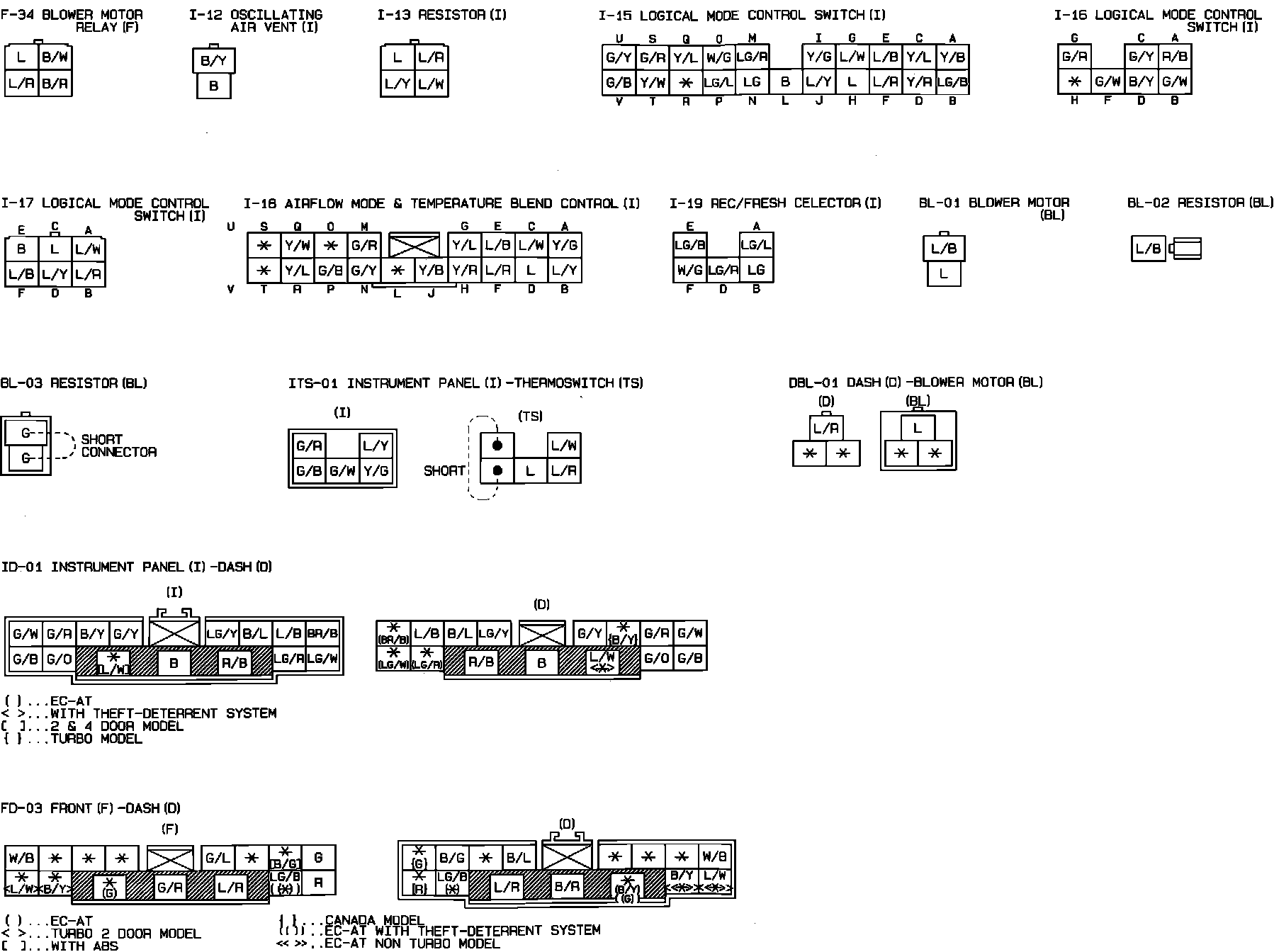 Heater & Air Conditioning. With Logical Mode Control. Connector Identification: