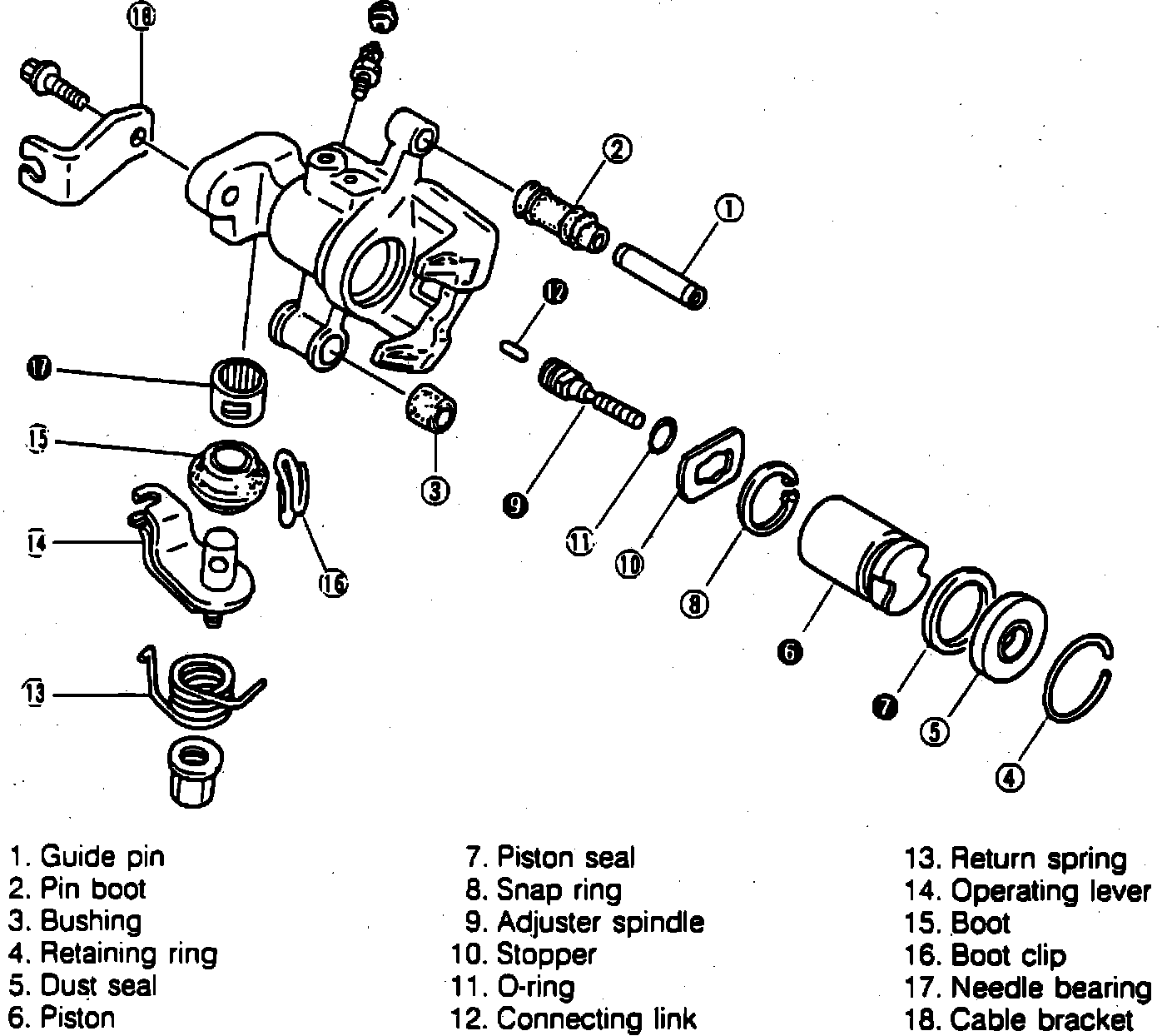 Fig. 13 Exploded View Of Rear Disc Brake Caliper: