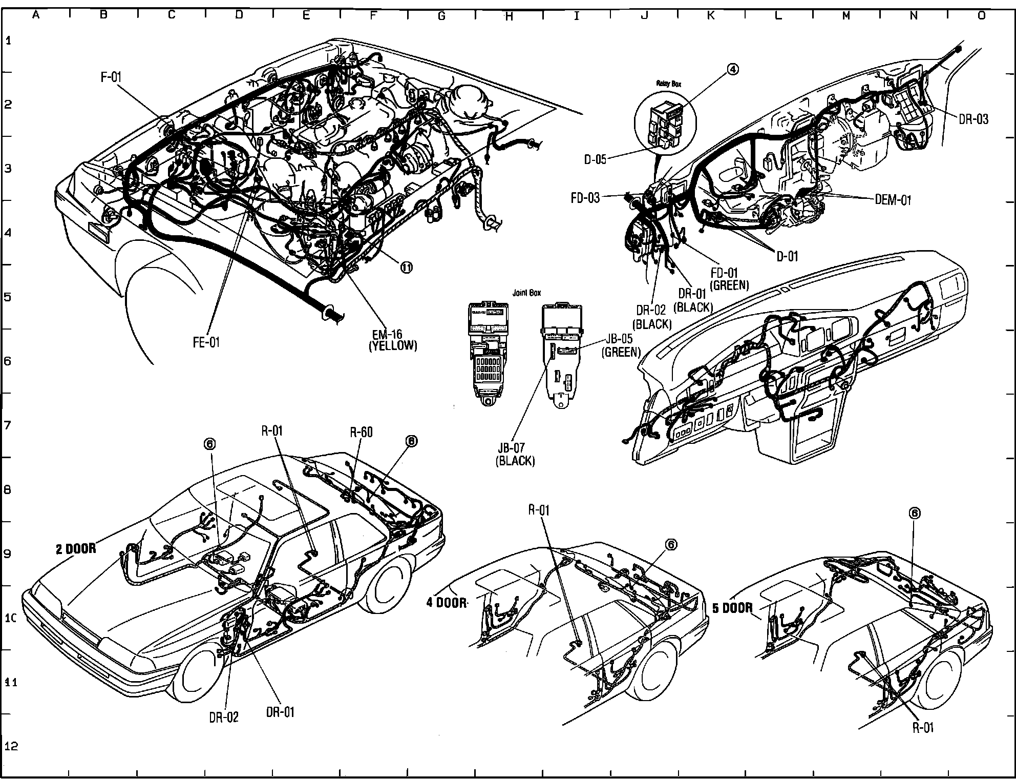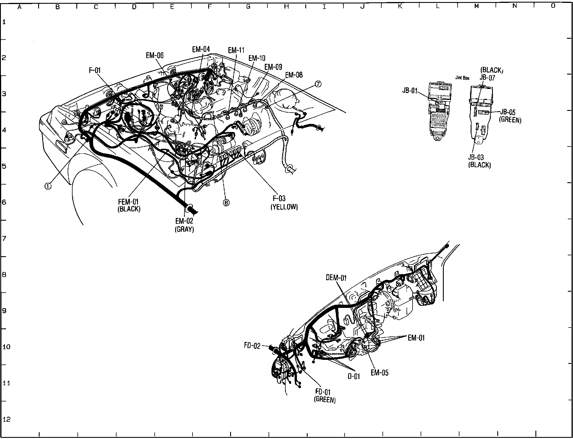 Ignition & Engine Control System. Non-Turbo. Harness Locations: